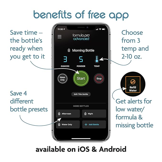 - MOST ADVANCED WAY TO AUTOMATICALLY MAKE A WARM, FORMULA BOTTLE IN SECONDS FROM YOUR PHONE: Press start on the app and the bottle will be ready when you get to your kitchen - No measuring, no mixing, no fuss
