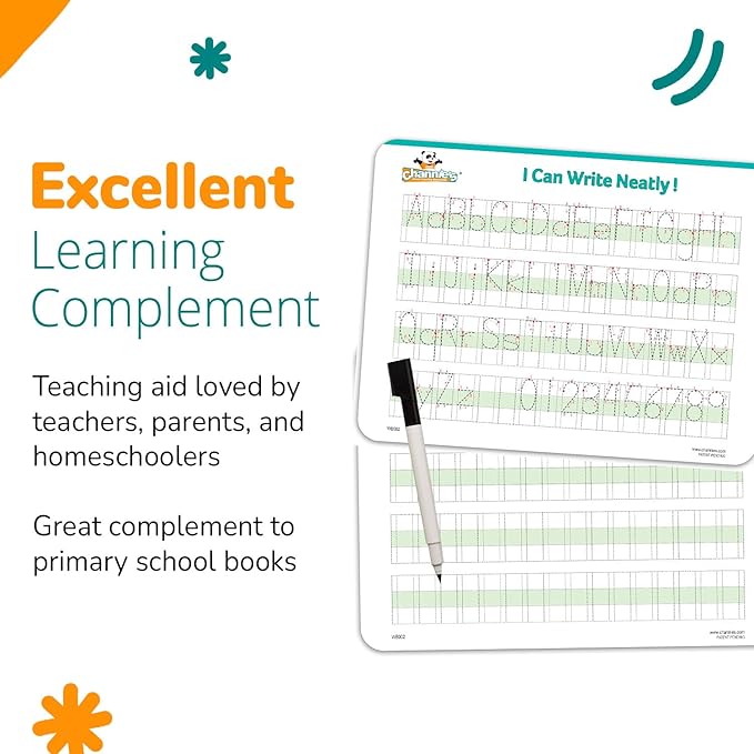 Channie’s Visual Dry Erase Neat Alphabet Hard Board for 1st, 2nd, 3rd Elementary School Students, Handwriting Practice, Homeschool Learning Supplies and Summer Teaching Workbooks