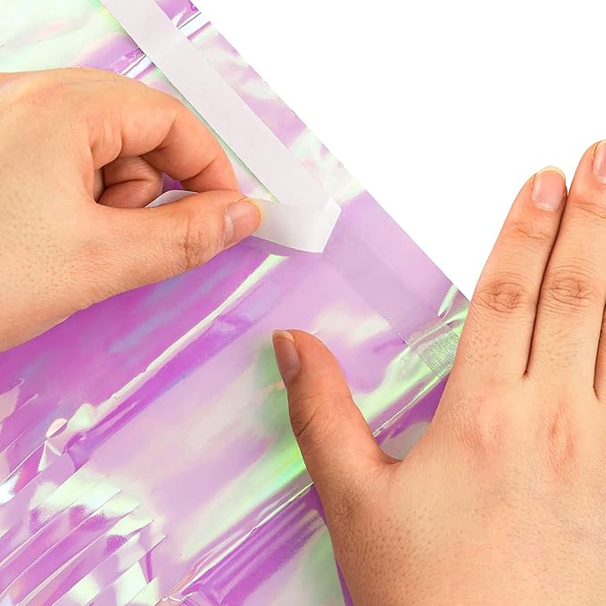 - The top of all fringe streamer curtains is covered with double-sided adhesive tape, No Push Pins or Tack Needed. With a sticky tape on top so they are super easy to hang and stay up pretty well. Perfectly stay in place for the duration of indoor or outdoor event.