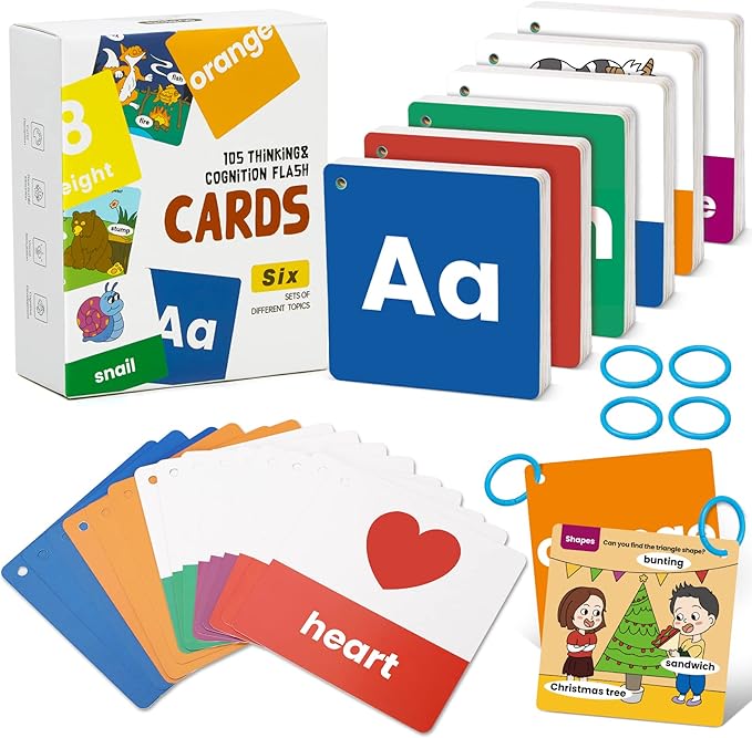 - 105 Toddler Flashcards: The Flashcards set consists of 105 uniquely designed double sided flash cards. Includes 11 Colors cards, 26 Letters cards, 12 Animals cards, 14 Shapes cards, 20 Numbers cards, 22 Body parts cards.
