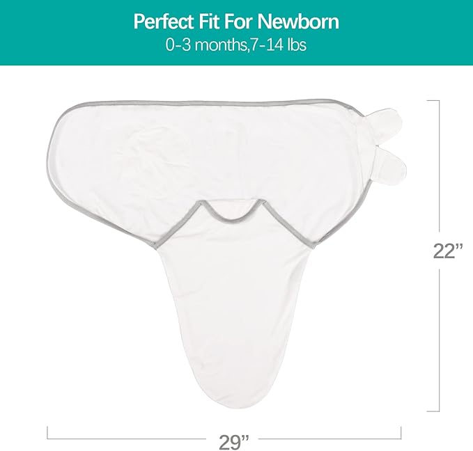 - ♥ 0-3 months, 7-14 lbs, 29x22 inches, Cotton, Machine wash, Grey & White. It’s perfect for your newborn who is not yet rolling over and likes to be swaddled with their arms in.