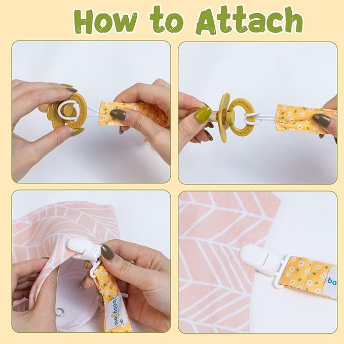 - Multifunctional Usage: These pacifier leashes are usually used for soothies, teethers,burp cloths, teething rings and toys, baby blankets, drool bibs. It is an universal pacifier clip and fits to your favorite brand of pacifier and soother.