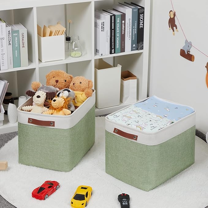 - 【Multi-purpose】Sturdy fabric storage bins provide a solution to many storage needs: organizing and storing baby products, clothes, shoes, kid’s toys, pet products, shelf baskets for organizing closet, toiletry storage, laundry clothes, towel, blanket, bedsheet, sports gears, many other uses