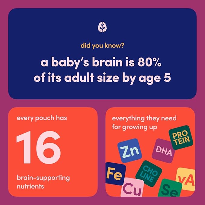 - BRAIN SUPPORTING NUTRIENTS - Cerebelly baby puree pouches are the only organic fruit and veggie pouch that delivers 16 brain-supporting nutrients that play a pivotal role in your child's cognitive development. With 40% of their daily value of Potassium, 25% daily value of Iron and 60% daily value of Vitamin A, these pouches pack a punch!