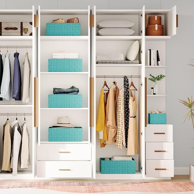 Woven Storage Baskets, Storage Bins, Cube Basket Container Baskets Storage Boxes Organizers for Clothes /Shelves/ Closet, Set of 6 (Aqua)