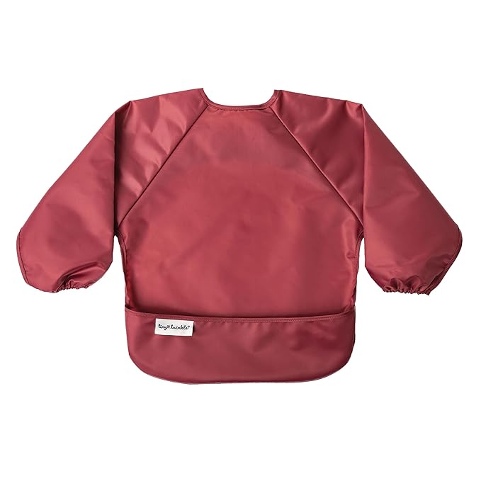 Tiny Twinkle Mess Proof Baby Bibs, 2pk Waterproof Smock Baby Bibs for Eating, Machine Washable Long Sleeve Bibs, Baby Led Weaning, Toddler Bibs, BLW Supplies (Rose Burgundy, Small 6-24 Months)