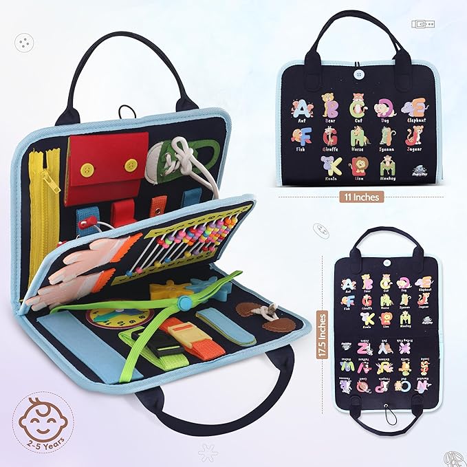 Busy Book for Toddlers - Montessori Busy Board with Sensory Activities for Learning Fine Motor Skills, Travel Toys for Toddlers for Airplane, Car. for Boys and Girls.