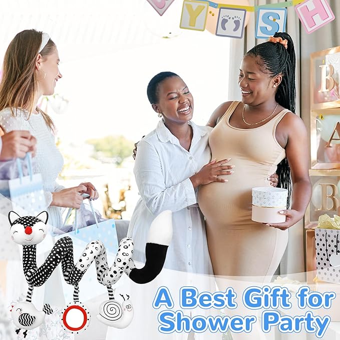 - [Black and White Baby Toys 0-3 Months] When your baby sleeps, you can put the infant toys beside your baby. The Activity Spiral Car Seat Toys can serve as your baby's sweetheart partner and accompany your baby to sleep all night. Moreover, you can put baby crib toys in the Baby Gym, Play Mats, Strollers, Cribs, Baby Car Seats Cots, etc. Any questions about the baby car toys & stroller toys, please contact our customer service. We will provide 100% satisfaction for babies and parents