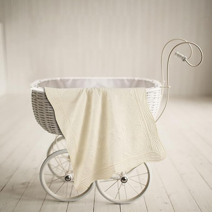 MONOBLANKS Baby Quilt Personlized Monogram Lightweight Embossed Scalloped Throw Blanket Four Seasons (Light Yellow)