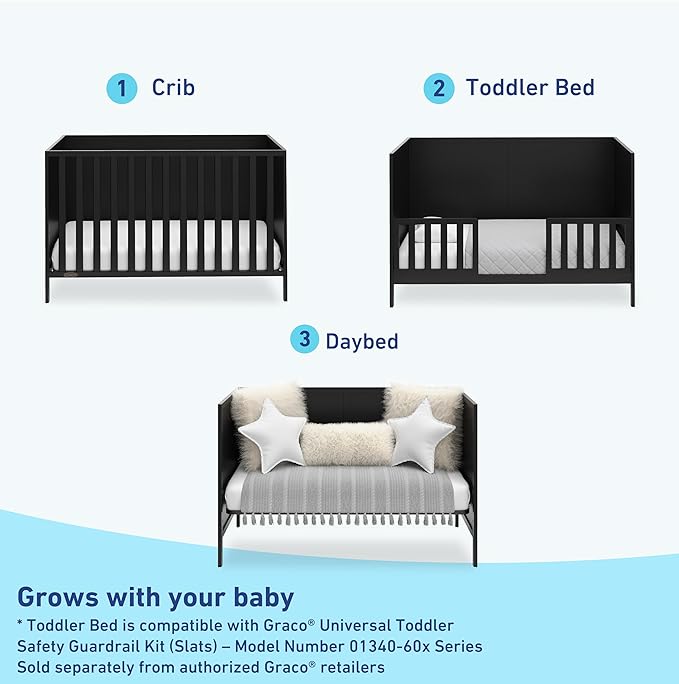 Graco Theo 3-in-1 Convertible Baby Crib (Black) - GREENGUARD Gold Certified, Converts to Toddler Bed & Daybed, Fits Standard Full-Size Baby Crib Mattress, 4 Adjustable Mattress Heights