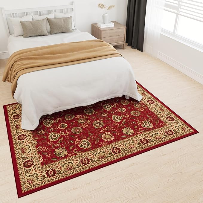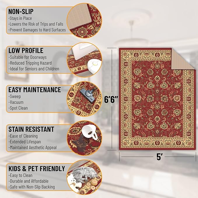 Ottomanson 5' x 6'6" Rugs for Living Room Oriental Area Rug for Bedroom - Non Slip Durable Large Floor Carpet for High Traffic Areas - Indoor Rug for Dining Room Kitchen Kids Playroom, Red
