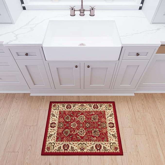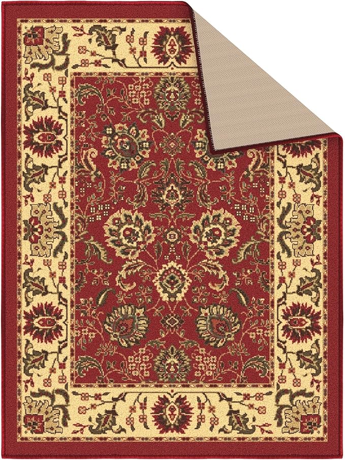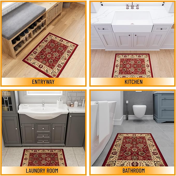 Ottomanson Rugs for Entryway 2'3" x 3' Non Slip Oriental Small Area Rugs Durable Front Door Mat Rug Stain Resistant Entrance Rugs for Bathroom Kitchen Bedroom & Living Room, Red
