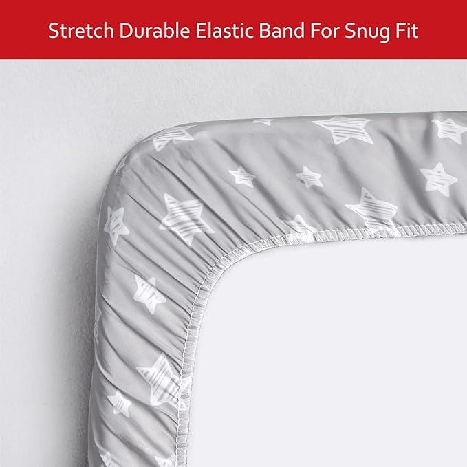 Waterproof Pack and Play Mattress Pad Protector 39" x 27" 2 Pack, Compatible with Graco Pack n Play, Playard Mattress Protector, Grey & White Star