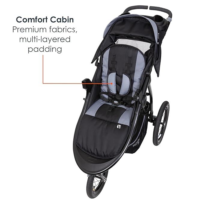 - Comfort Cabin: Plush padded stroller seat with multiple reclining positions for comfortable ride