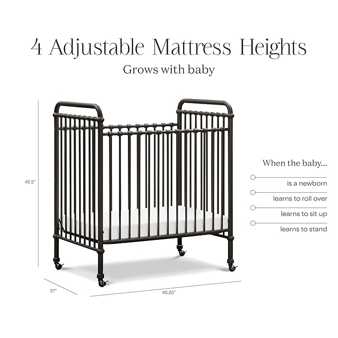 - PORTABLE & GROWS WITH BABY: Removable wheels allow for portability & four adjustable mattress positions allow for mattress lowering as your baby grows. Easily converts to toddler bed and daybed. (toddler bed conversion kit #M25599 sold separately)