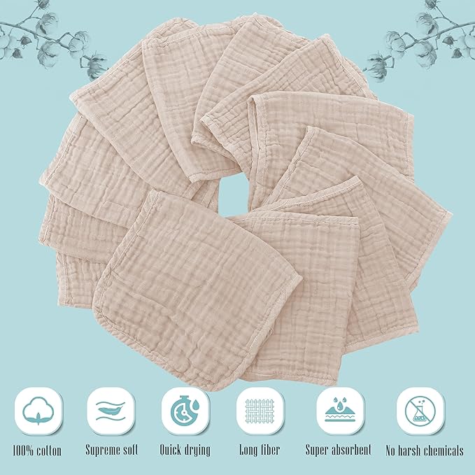 24 Pack Muslin Burp Cloths for Baby - Ultra-Soft 100% Cotton Baby Washcloths - Large 20'' by 10'' Super Absorbent Milk Spit Up Rags - Burpy Cloths for Unisex, Boy, Girl - Brown