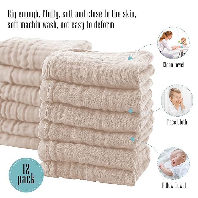 - 【NEWBORN ESSENTIALS MUST HAVES】 MULTI-PURPOSE ESSENTIAL FOR BABIES – our muslin cloths are so versatile and can be used in a multitude of ways. Perfect for protecting your clothing when burping little ones, wiping up sticky messes, as a breastfeeding cover up, for teething, dribbling babies or even as a changing mat cover when out and about to keep the area hygienic
