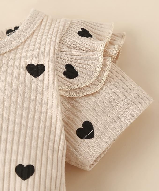 • Baby girl outfits with adorable heart prints express great love from family.The ruffled layered shoulder,frill pant and headband will highlight your beloved Baby beauty.