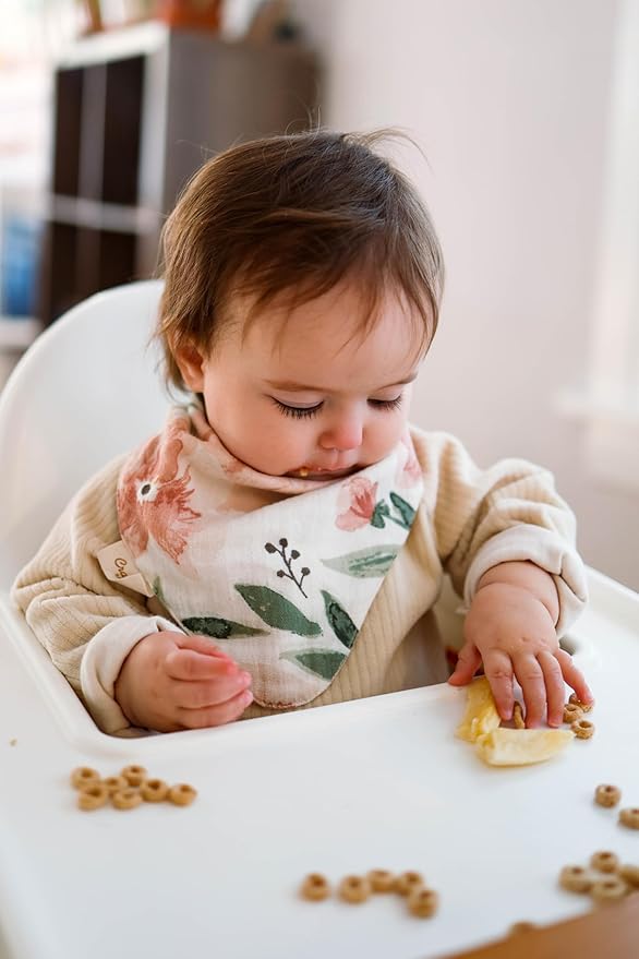 Crane Baby Soft Muslin Baby Bib Set, Adjustable and Absorbent Bandana Style Bibs for Boys and Girls, Floral, 3 Piece, 18.5” x 9”