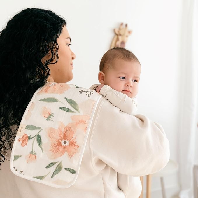 - FLORAL AESTHETICS: Admire the floral aesthetics of these baby burp cloths girls, featuring a delightful mix of pink rose and green floral prints. Adding a touch of elegance to your infant essentials, they complement any floral crib sheets or wildflower nursery decor.