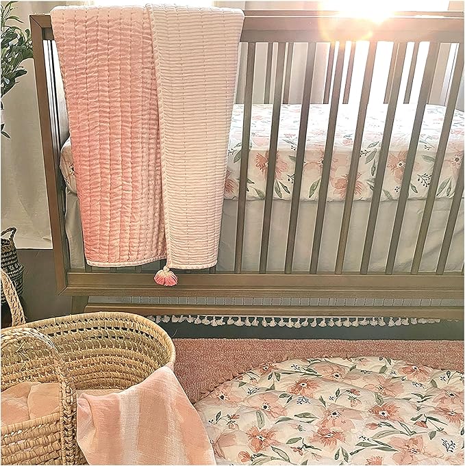 - FLORAL ALLURE: Dive into the allure of our pink crib sheets, their floral design harmonizing beautifully with pink nursery decor. These toddler bed sheets for girls are handmade and soothing, creating a cozy and inviting sleeping environment.