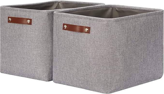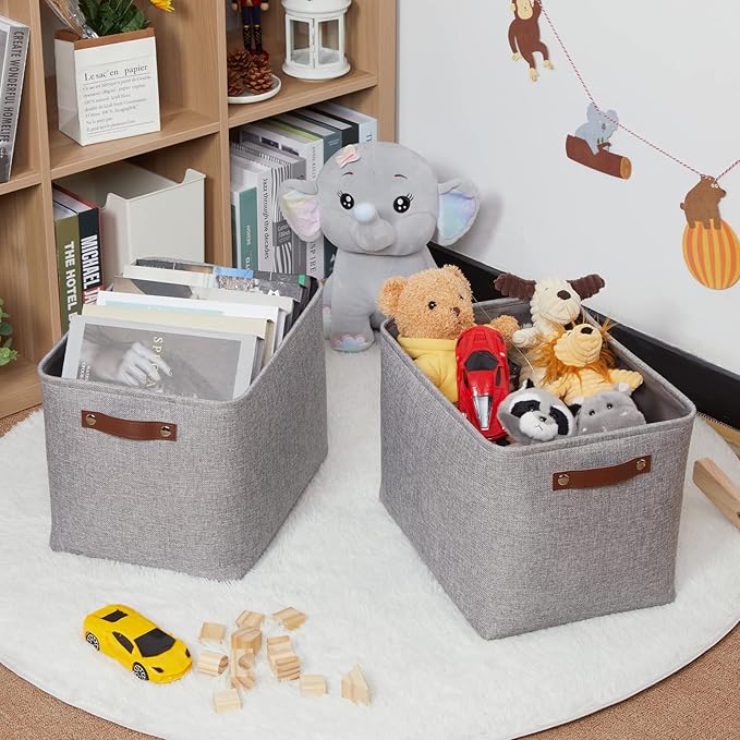 HNZIGE Large Rectangle Storage Baskets for Shelves 16"×11.8"×11.8" Fabric Storage Bins with Handles (2 Pack) Decorative Storage Baskets for Organizing Clothes, Toy, Quilts, Sundries Closet(Gray)