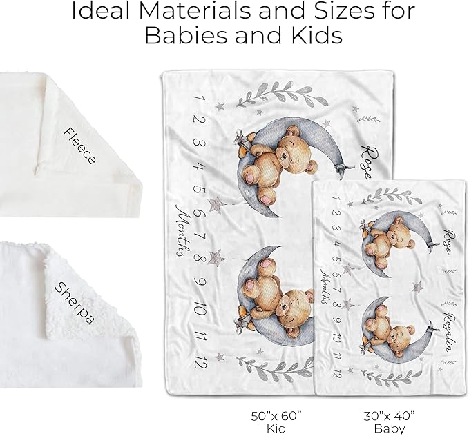 MDPrints Personalized Twin Milestone Blanket, Custom Monthly Baby Blankets with Name for Boys and Girls, 30x40 & 50x60inch Soft Plush Fleece (Teddy)