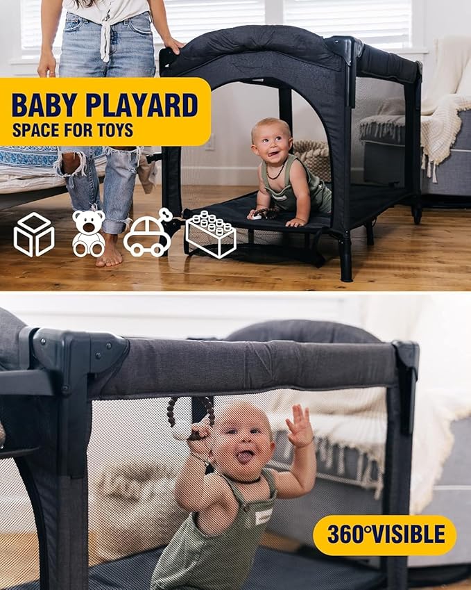 - ❸ PLAYPEN MODE & 360° VENTILATION:Easily convert BEKA bassinet bedside sleeper into a playpen by removing the upper layer and placing the mattress at the base. The 360° mesh design provides optimal ventilation and visibility, letting parents monitor their baby effortlessly while keeping pets out. A side zipper allows your child to crawl in and out, making playtime fun and cleanup simple. BEKA pack n play with bassinet adds additional storage for toys and essentials, adapting seamlessly to your child's growth.