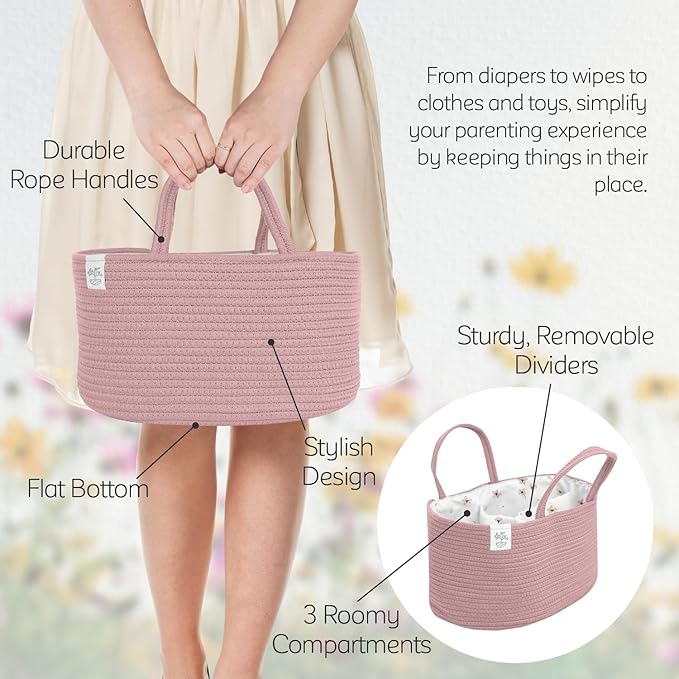 - Perfect Baby Shower Gift: Surprise new parents with this versatile diaper organizer caddy. It's the ideal large diaper caddy also in X-Large, perfect for storing baby essentials as a basket for nursery or as a nappy caddy for travel. Whether used as a diaper holder at home or a rope diaper caddy on the go, it offers ample space for everything. A practical and thoughtful gift that new moms and dads will love!