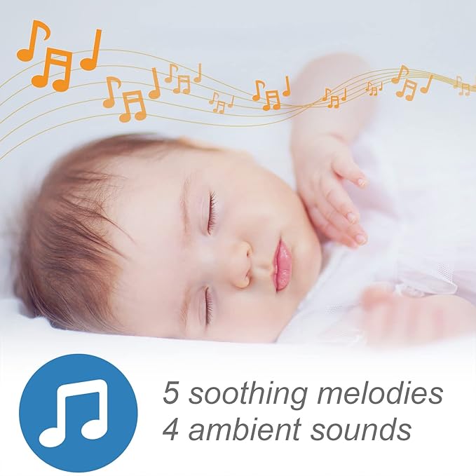 - [Soothing Sounds & Temperature Sensor] - Create a comfortable and pleasant environment for the baby with right temperature and natural sounds/lullabies to soothe the senses.