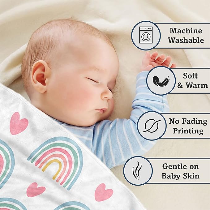 Arteaga Personalized Baby Blanket for Girls, Customized Rainbow Design for Newborn, New Mom, Super Soft Plush Fleece, 30''x40'', King