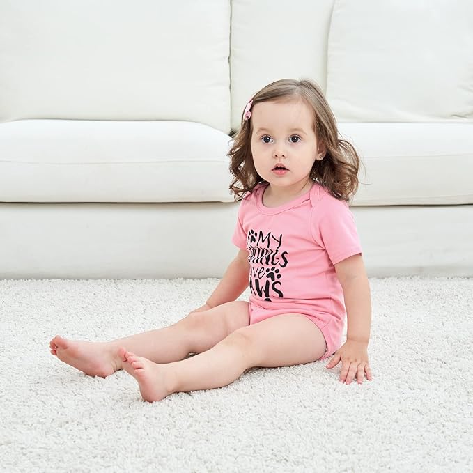 - Funny: Baby Bodysuit in cute funny letters printed, such as "My siblings have paws", perfect gift bring extra laughter and joy with your baby;