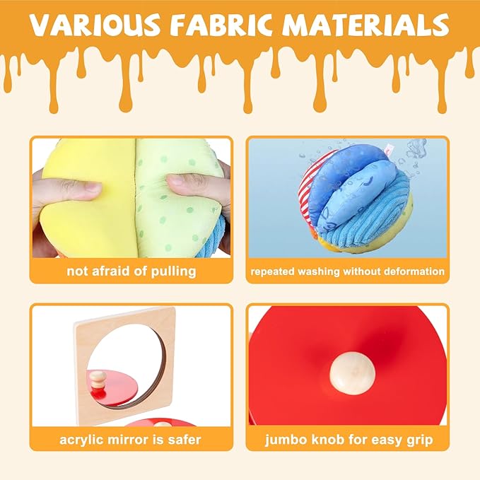 - 1-Piece chunky mirror knob peekaboo puzzle with bright red puzzle piece to boost sensory development, promotes object permanence and learn hand-eye coordination, fine motor skills and problem solving.