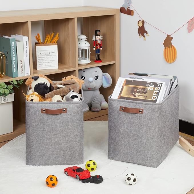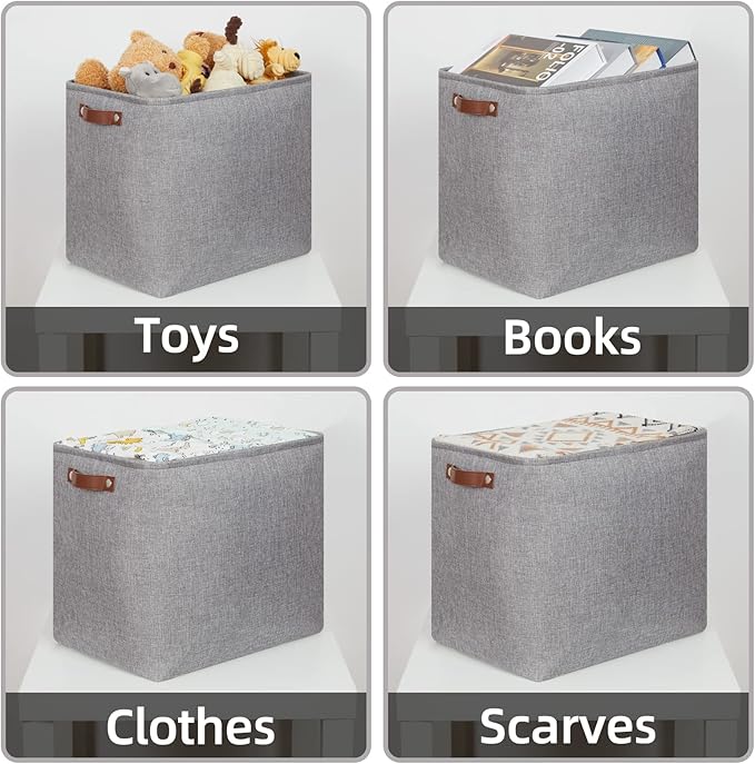 - 【Multi-purpose】Sturdy fabric storage bins provide a solution to many storage needs: organizing and storing baby products, clothes, shoes, kid’s toys, pet products, shelf baskets for organizing closet, toiletry storage, laundry clothes, towel, blanket, bedsheets, sports gears, many other uses