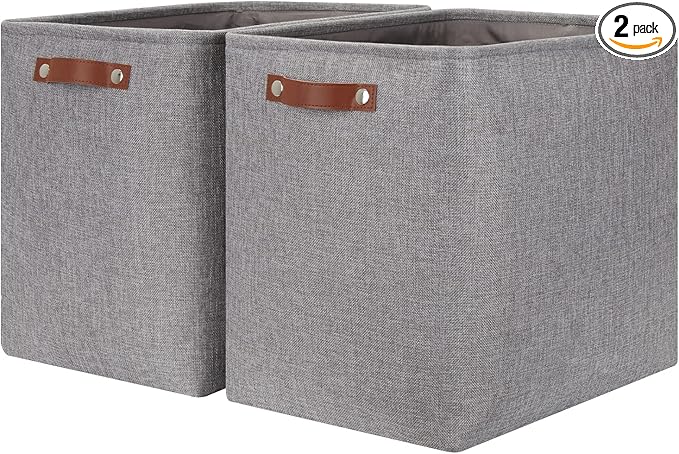- 【HNZIGE 2-Pack Extra Large Storage Baskets】Set of 2 large fabric storage baskets(17" x 12" x 15). There are leather handles on both sides. This linen storage basket for organizing is a new and exclusive design to help you find your things at a glance