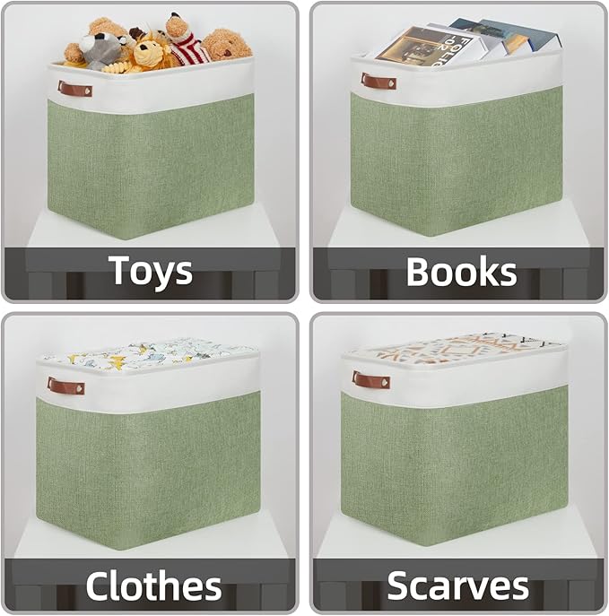 - 【Multi-purpose】Sturdy large fabric storage bins provide a solution to many storage needs: organizing and storing baby products, clothes, shoes, kid’s toys, pet products, shelf baskets for organizing closet, toiletry storage, laundry clothes, towel, blanket, bedsheets, sports gears, many other uses