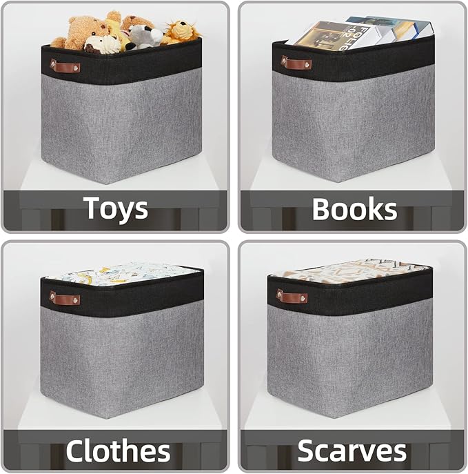 - 【Multi-purpose】Sturdy fabric storage bins provide a solution to many storage needs: organizing and storing baby products, clothes, shoes, kid’s toys, pet products, shelf baskets for organizing closet, toiletry storage, laundry clothes, towel, blanket, bedsheets, sports gears, many other uses