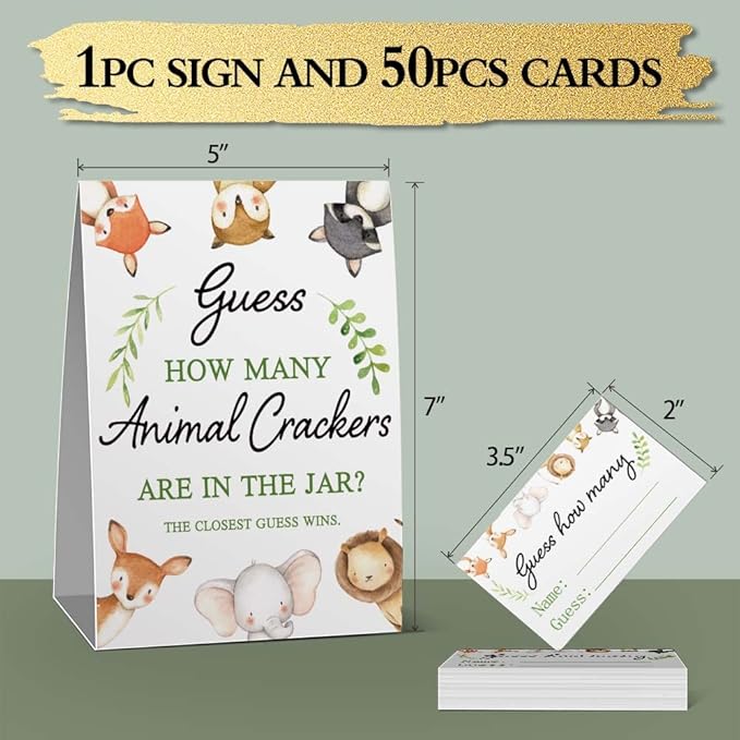 Guess How Many Animal Crackers are in the Jar,Watercolor Woodland Animals Baby Shower Decorations,(1 Sign+50 Cards), How Many Animal Crackers Birthday, Christmas, Funny Party Game