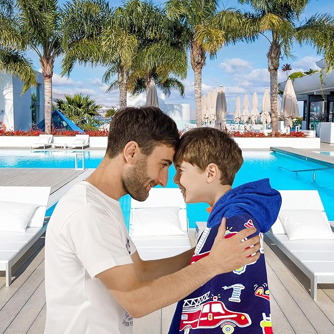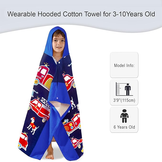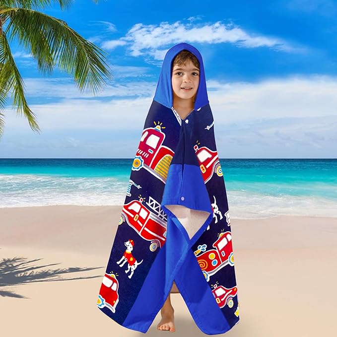 - FIRE TRUCK BATH TOWELS: This Hooded COTTON : towel wraps adopts an environmentally friendly Printing, the fire truck cars make kids towel so gorgeous and and be kids costume cape attractive that can get children’s love at once! The Fire Truck Fans absolutely love this and make your little stands out from bath beach or pool