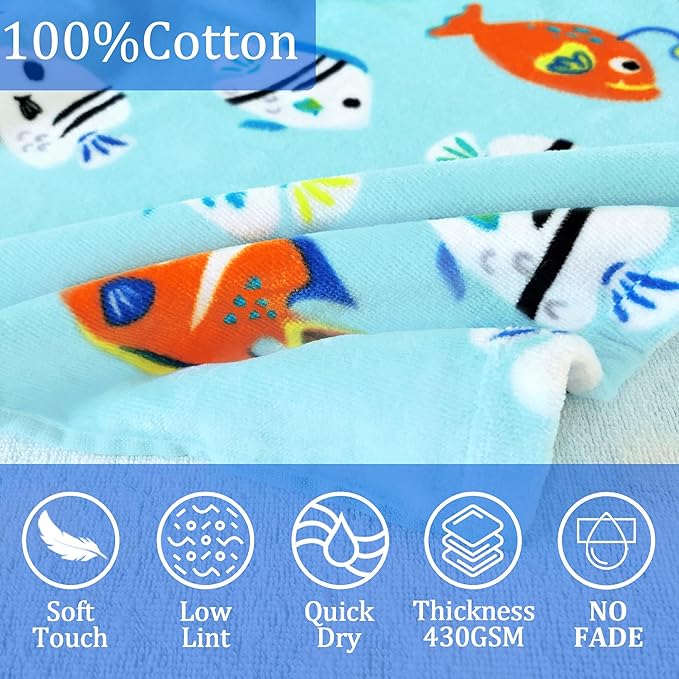 - Fish Bath Towels:This Hooded COTTON towel wraps adopts an environmentally friendly Printing, the fish make kids towel so gorgeous and attractive that can get children’s love at once! The beautiful Fish pattern looks very delicate, absolutely make your little angel stands out from beach or pool