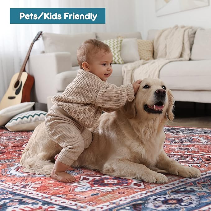 - [Non-slip&Non-shedding Rug] Designed with skid resistant TPR backing, the carpet will grip firmly to the floor without the need for additional rug pads,reducing the risk of tripping. Expertly machine woven and reinforced overlock edges ensure virtually non-shedding. Strong and durable for kids to play on it and no need to worry about pet paw scratches.