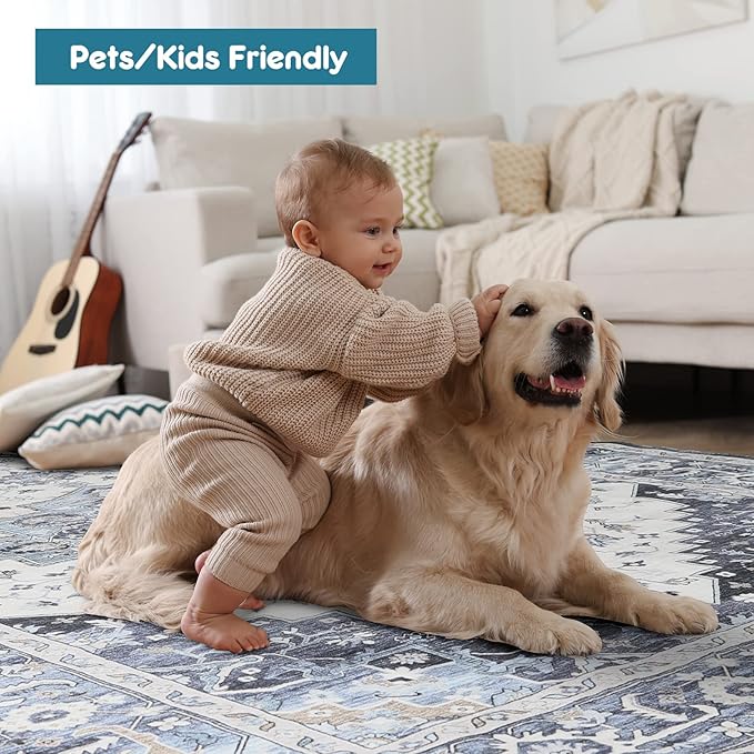 - [Non-slip&Non-shedding Rug] Designed with skid resistant TPR backing, the carpet will grip firmly to the floor without the need for additional rug pads,reducing the risk of tripping. Expertly machine woven and reinforced overlock edges ensure virtually non-shedding. Strong and durable for kids to play on it and no need to worry about pet paw scratches.