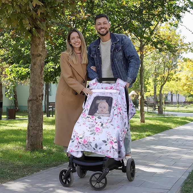 - 2-in-1 Car Seat Canopy: Bnditeu baby car seat cover features two layers of windows for flexible temperature adjustment. One layer is a breathable mesh peep window, allowing mothers to observe the baby and providing ample ventilation. The other layer is a 360° protected window that defends agains the wind and protects your baby's privacy