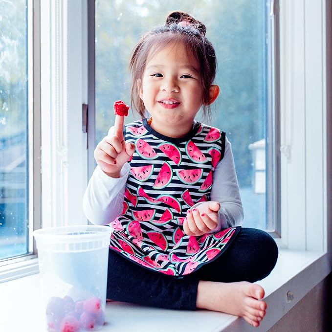 BapronBaby Watermelon Stripes Bapron - No Neck Tie Safer Bib for Baby & Toddler - Soft Waterproof Stain Resistant - Machine Washable - Sz Baby/Toddler 6m-3T