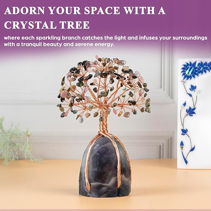- 🏡Crystal Decor For Any Space – From Shelves To Bedrooms : Enhance your bedroom decor, bookshelf decor, or office corner with this vibrant crystal tree. With its colorful branches and grounding fluorite base, it fits perfectly as cute shelf decor or as a centerpiece in a calming nook. Ideal for those who love natural aesthetics, this crystal decor adds a splash of color and peaceful energy to your home while also serving as a stunning conversation piece.