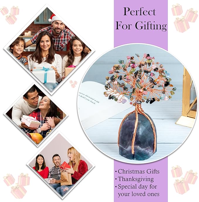 - 💎 Tourmaline Crystal With Fluorite – Style Meets Spiritual Energy : This tree of life decor combines the balancing energy of Multi Tourmaline with the clarity and cleansing vibes of Fluorite. Tourmaline promotes protection and emotional stability, while Fluorite focus and purification. Together, this gemstone tree a powerful and decorative tool for emotional and spiritual. perfect for lovers of crystals and healing stones and thoughtful gifts for women birthday unique.