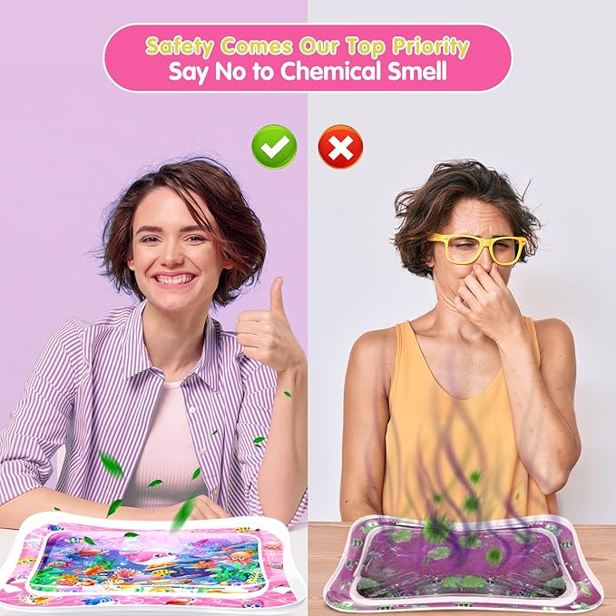 - Superior quality and 100% leak-proof: Our baby water mats are made from durable, 100% BPA-free and non-toxic, heavy PVC materials. Each of our game mats has been rigorously tested. It is durable and waterproof, so it doesn't wet your baby's body.
