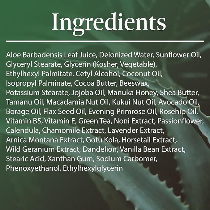 - CLEANER FORMULA, BETTER RESULTS: Our moisturizing cream is carefully crafted with a blend of natural ingredients like Aloe Vera & Manuka Honey, known for their hydrating & soothing properties. This formula penetrates deeply to lock in moisture without clogging pores, offering effective relief for itchy skin, dryness & irritation. Perfect as a body lotion for women, men & kids, it supports healthy skin by reducing the appearance of fine lines & giving a youthful glow.