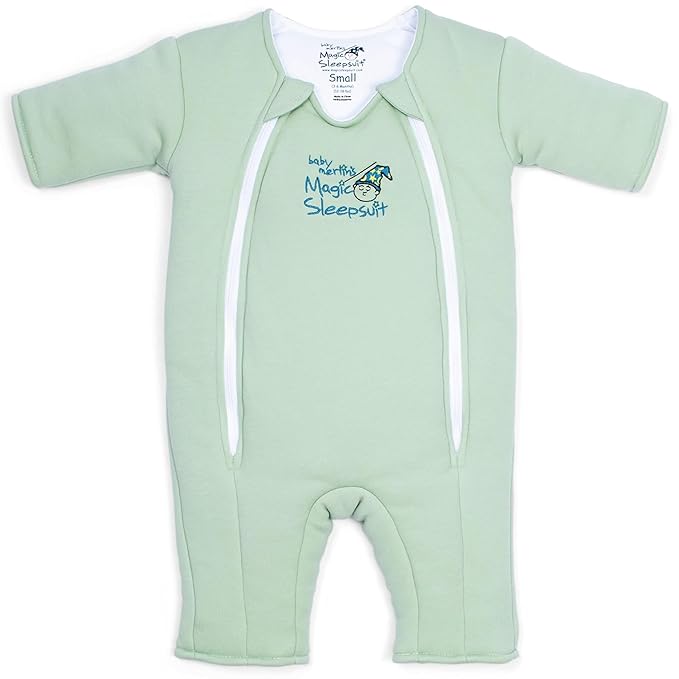 Magic Sleepsuit Baby Merlin's Cotton Baby Swaddle Transition Product - Soft and Cozy Design, Double Zipper for Easy Diaper Changes, Promotes Safe Sleep, 3-6 Months - Sage Green - Small 12-18lbs