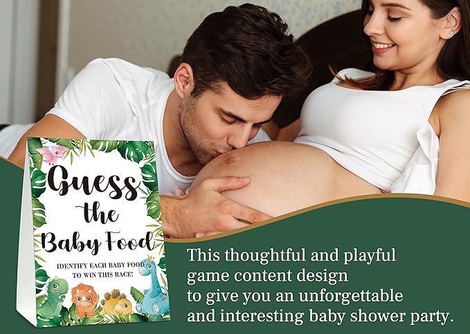 Baby Shower Game Set, Find The Baby Food Party Game(1 Standing Sign + 20 Answer Cards + 6 Number Cards), Safari Jungle Games for Boys and Girls, Dinosaur Gender Reveal Party Decor(A04)